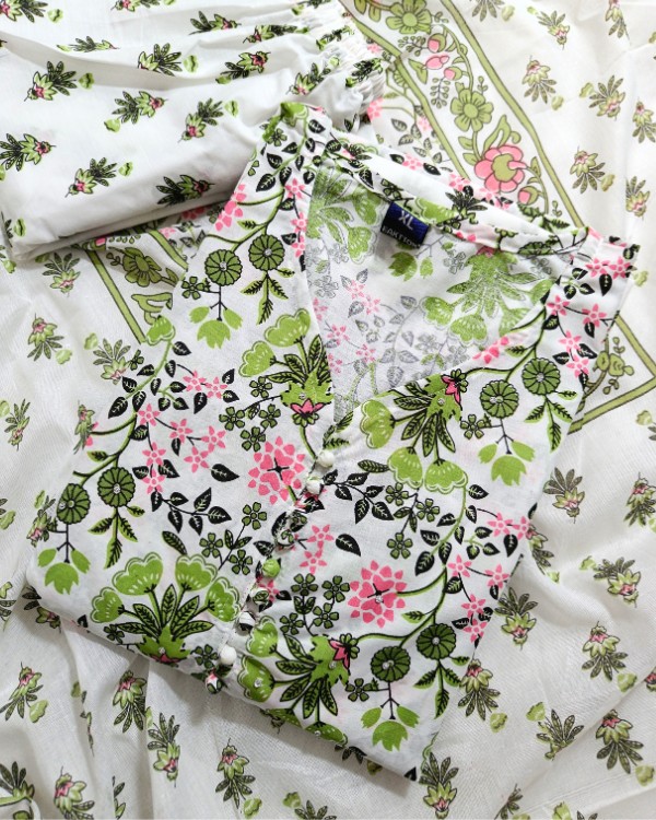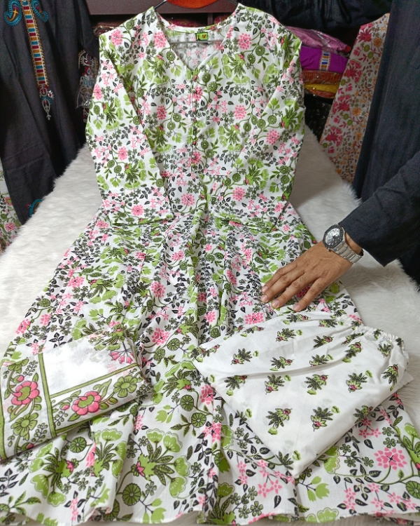 👗 গাউন – কটন ফ্যাব্রিক, নিখুঁত স্ক্রিনপ্রিন্ট ফিনিশ, লম্বা 46–47 ইঞ্চি, ফ্লেয়ার কাট 🌸